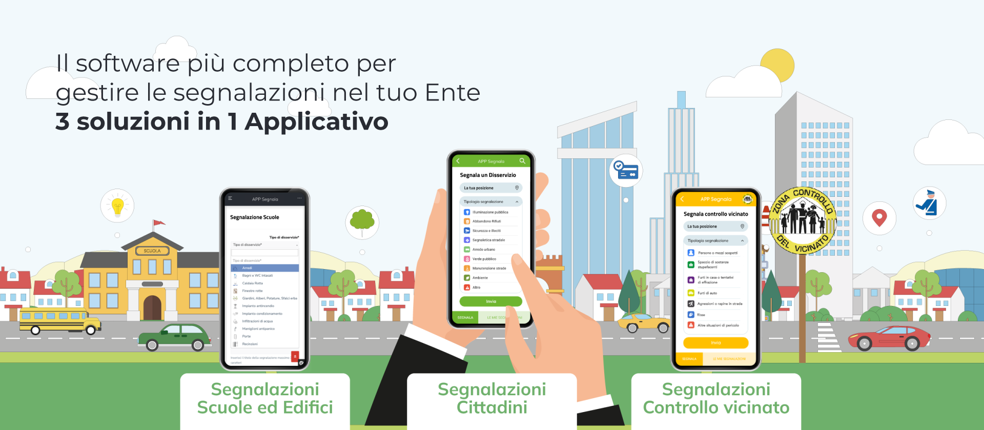 Segnalazioni Web è l’applicativo più innovativo e completo progettato per semplificare la comunicazione tra Cittadini e Amministrazione, migliorare la gestione dei guasti e disservizi riscontrati nel territorio e ottimizzare i processi interni degli Enti durante l’iter di ripristino. Il sistema consente l’invio, il monitoraggio e la gestione smart e centralizzata delle segnalazioni provenienti da Cittadini, Scuole e Controllo del Vicinato attraverso interfaccia web e APP mobile, con tracciamento dello stato, notifiche automatiche e strumenti di analisi.